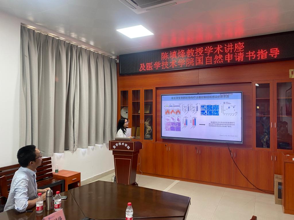 陈填烽教授在学术讲座结束后,又先后对我院余路新博士、陈玲铭博士、李璐博士三位老师的2023年国自然申请书进行了写作构思和研究基础上的指导,并强调在申报医学部国自然项目时一定要以临床问题为导向以寻找科学问题,从而为真正解决临床问题而进行国自然申报工作。本次讲座为我院的科学研究和进一步推进2023年国家自然科学基金申报工作提供了有力的指导和帮助。此外,学院和陈填烽教授就进一步加强双方的科研究交流与合作达成了初步意向。