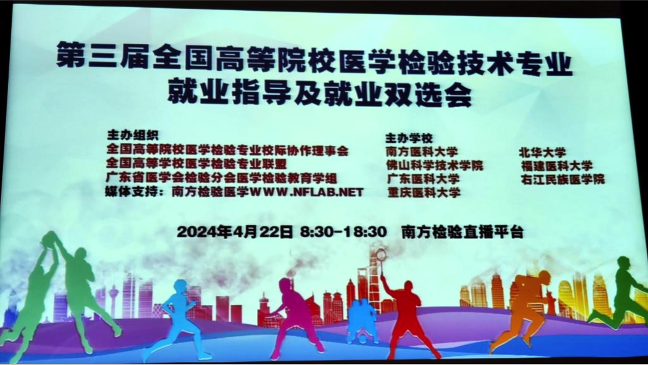 为了认真贯彻落实教育部和地方政府关于进一步促进高校毕业生就业工作的相关会议及文件精神,扩宽就业渠道,确保就业质量。4月22日,我校William威廉英国组织2020级、2021级同学参加由全国高等院校医学检验专业校际协作理事会、全国高校医学检验专业联盟、南方医科大学、北华大学、williamhill等组织及院校主办的第三届全国高等院校医学检验技术专业就业指导及就业双选会。会议采取线上线下同步进行的方式召开,我校William威廉英国、体外诊断产业学院阮杰副院长受邀作为会议主持专家参加了会议,体外诊断产业学院的同学及老师们在教室集中全程观看了直播。